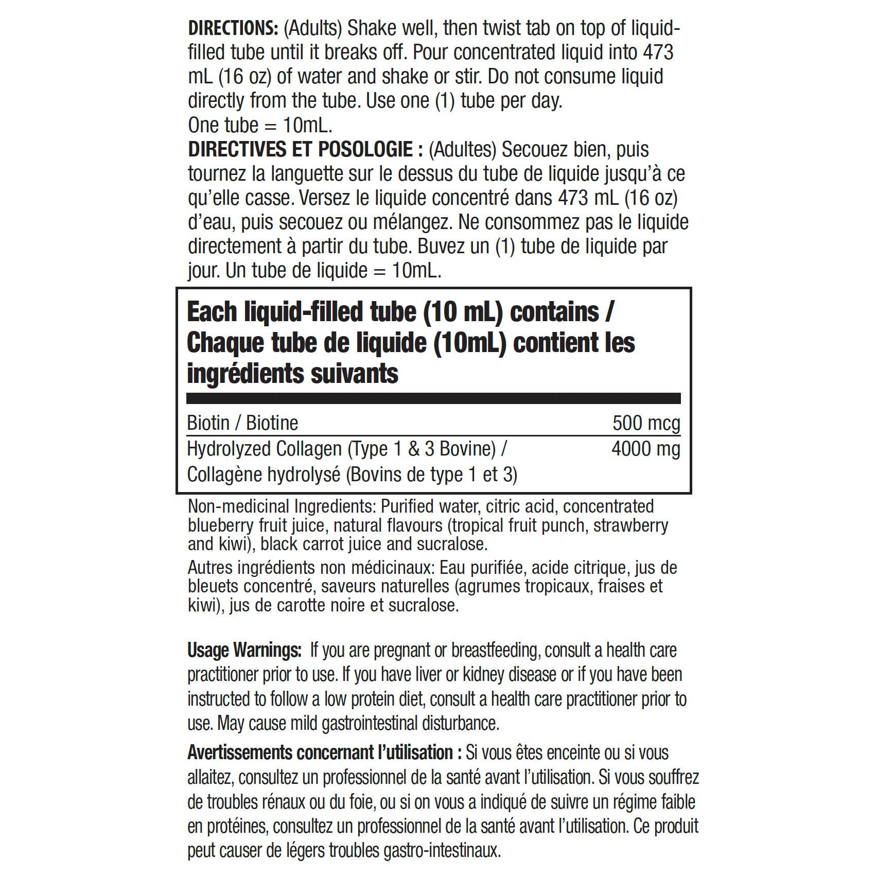 - 4000 mg of hydrolyzed (bovine) collagen per tube