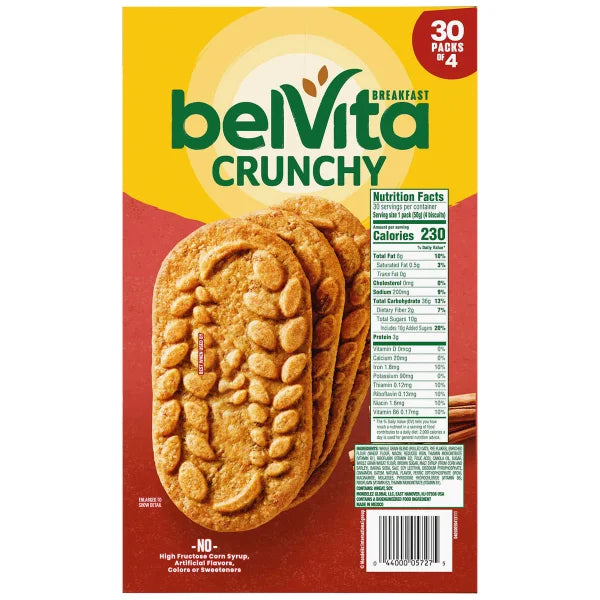 BelVita Breakfast Biscuit, Cinnamon Brown Sugar, 1.76 oz, 30-count