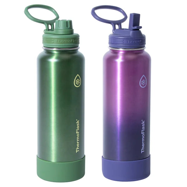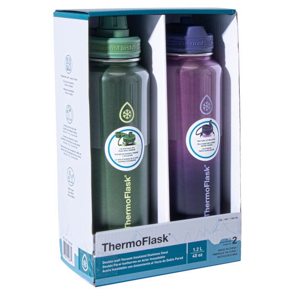 ThermoFlask 40oz. 2-pack keeps you set for everything from workouts to workdays. An essential fan-favorite, each set is perfect for hours of thirst quenching. Plus, with both straw and spout style leak-proof lids, there's no need to choose between one or the other.