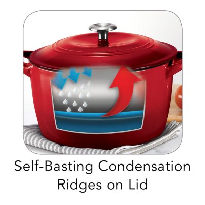Tramontina Enameled Cast Iron 7-Quart Covered Round Dutch Oven, Red